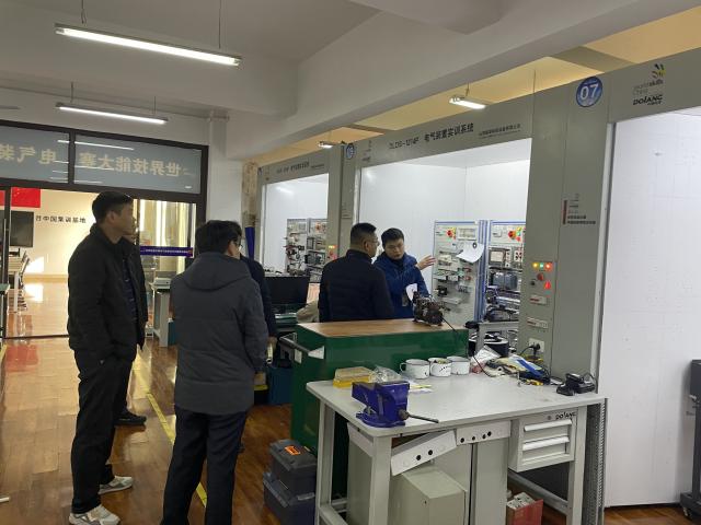 在洽谈会结束后,许怀东主席一行还参观了学校世界技能大赛电气装置项目国家集训基地等实训场地,表示学校的实训设施完备、先进,为学生提供了良好的学习条件和实践机会,对学校的办学实力和发展前景给予高度评价。