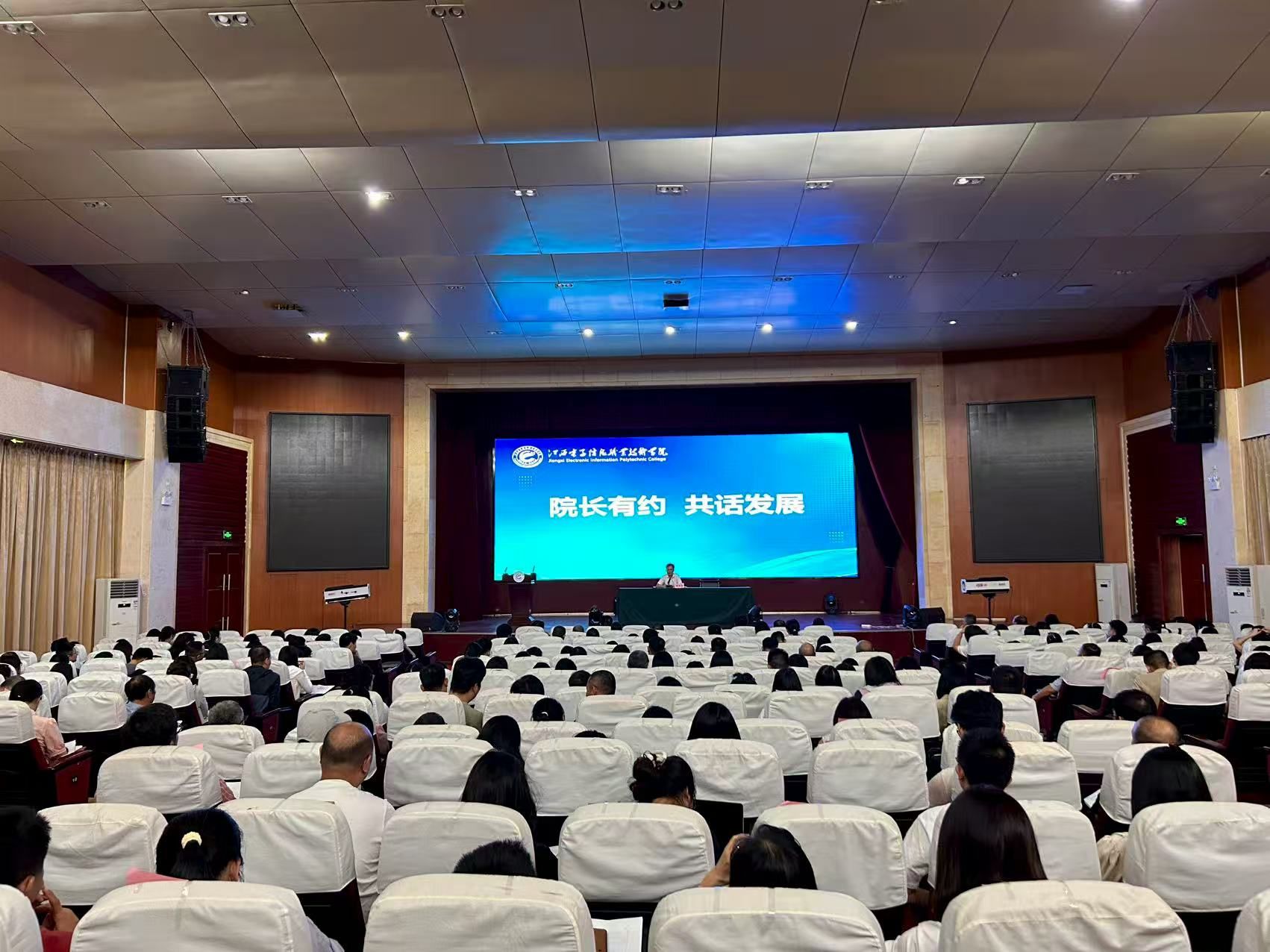8月17日,江西电子信息职业技术学院“院长有约 共话发展”成功举行。学校党委副书记、院长游振磊,党委委员、副院长陈嘉出席活动并讲话。各二级学院负责同志、专职教师等300余人参加活动。