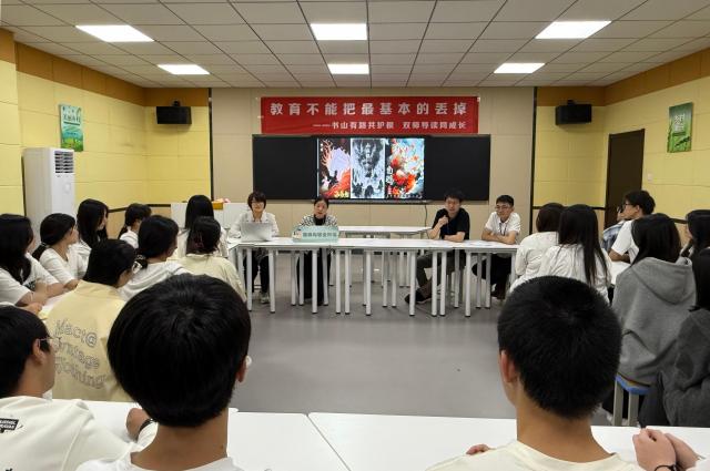 在师生对话环节,学生们踊跃发言,围绕“如何平衡理想与现实”“传统文化如何赋能现代生活”等话题展开热烈讨论。老师们结合自身学科特点,给予多元解答,现场气氛活跃,同学们在意犹未尽的共鸣中结束交流。